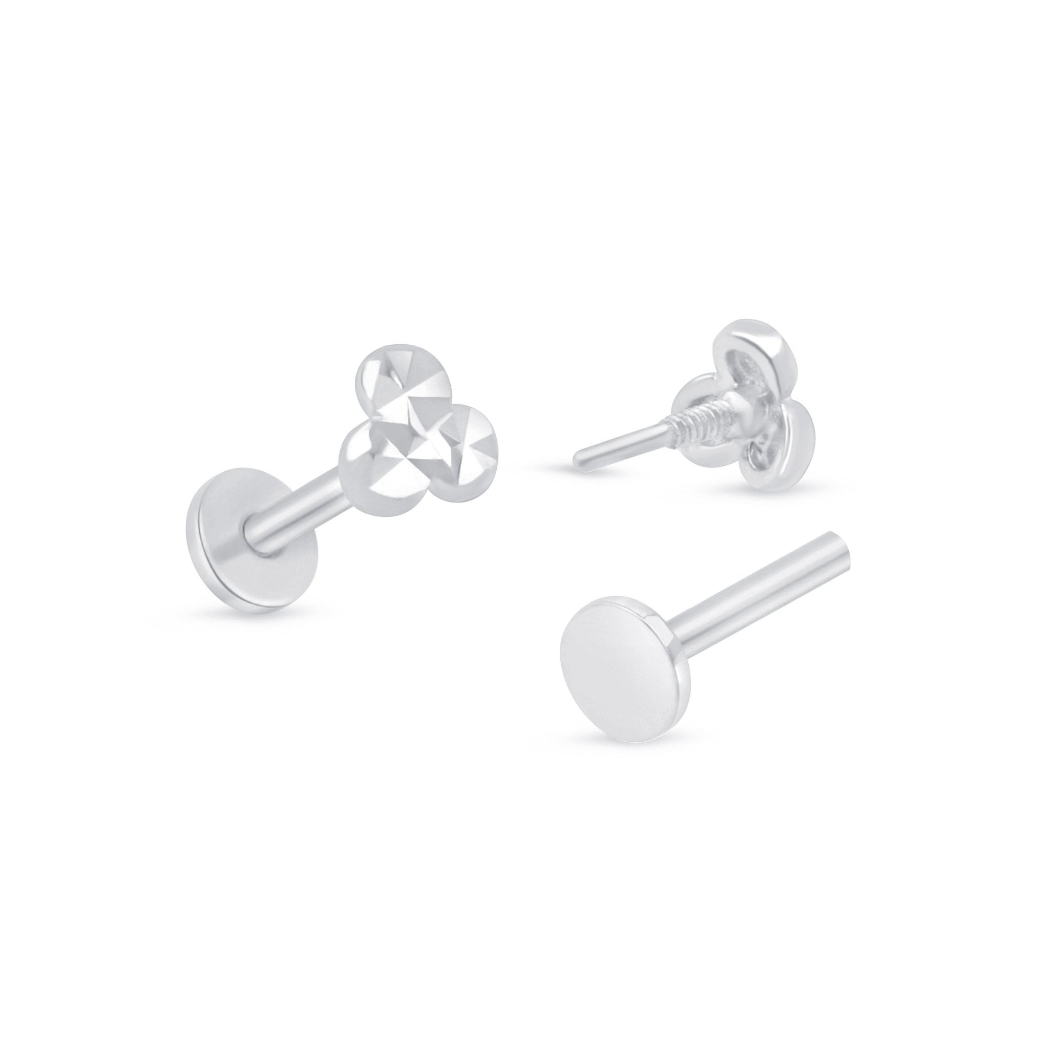 Diamond Cut Solid 14k White Gold Trinity Flat Back Stud Earrings