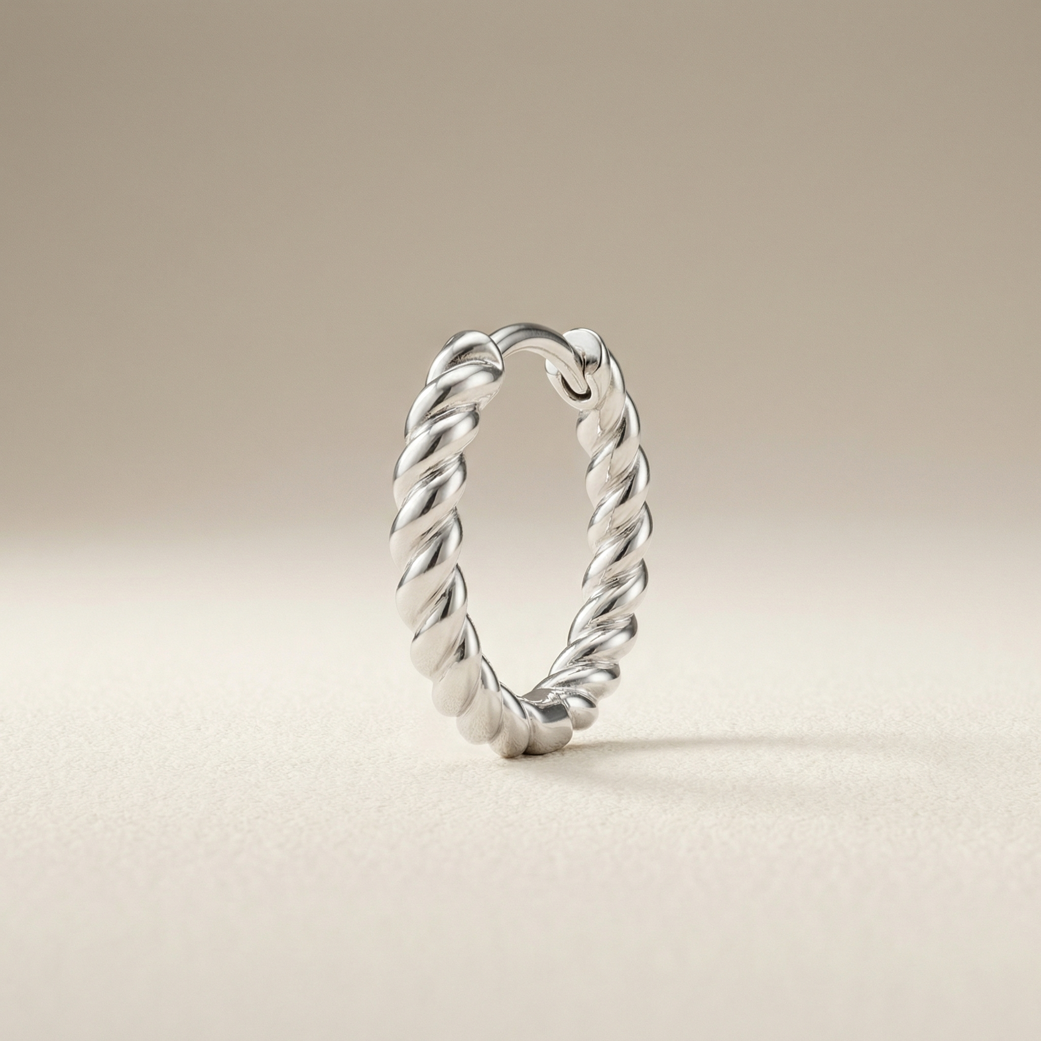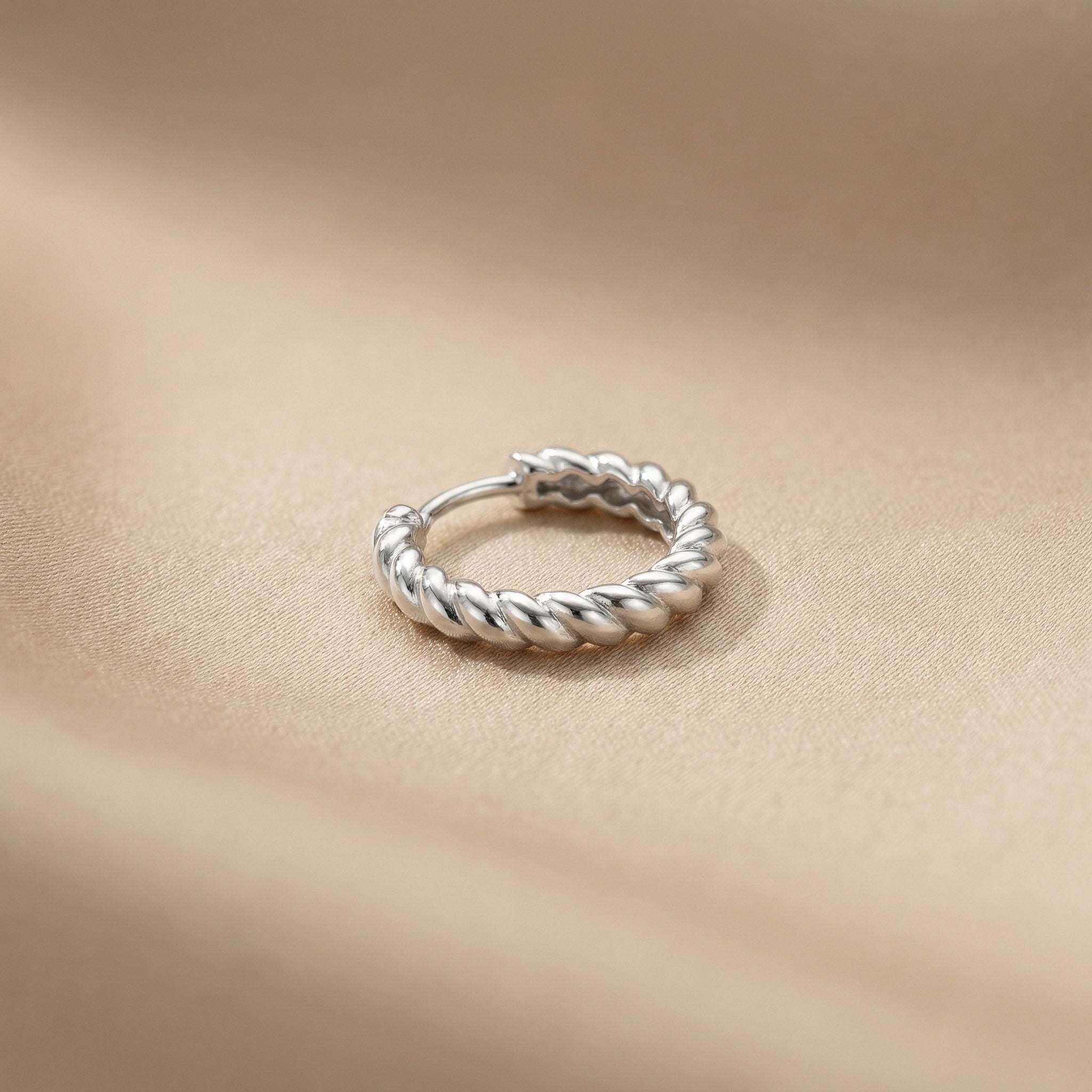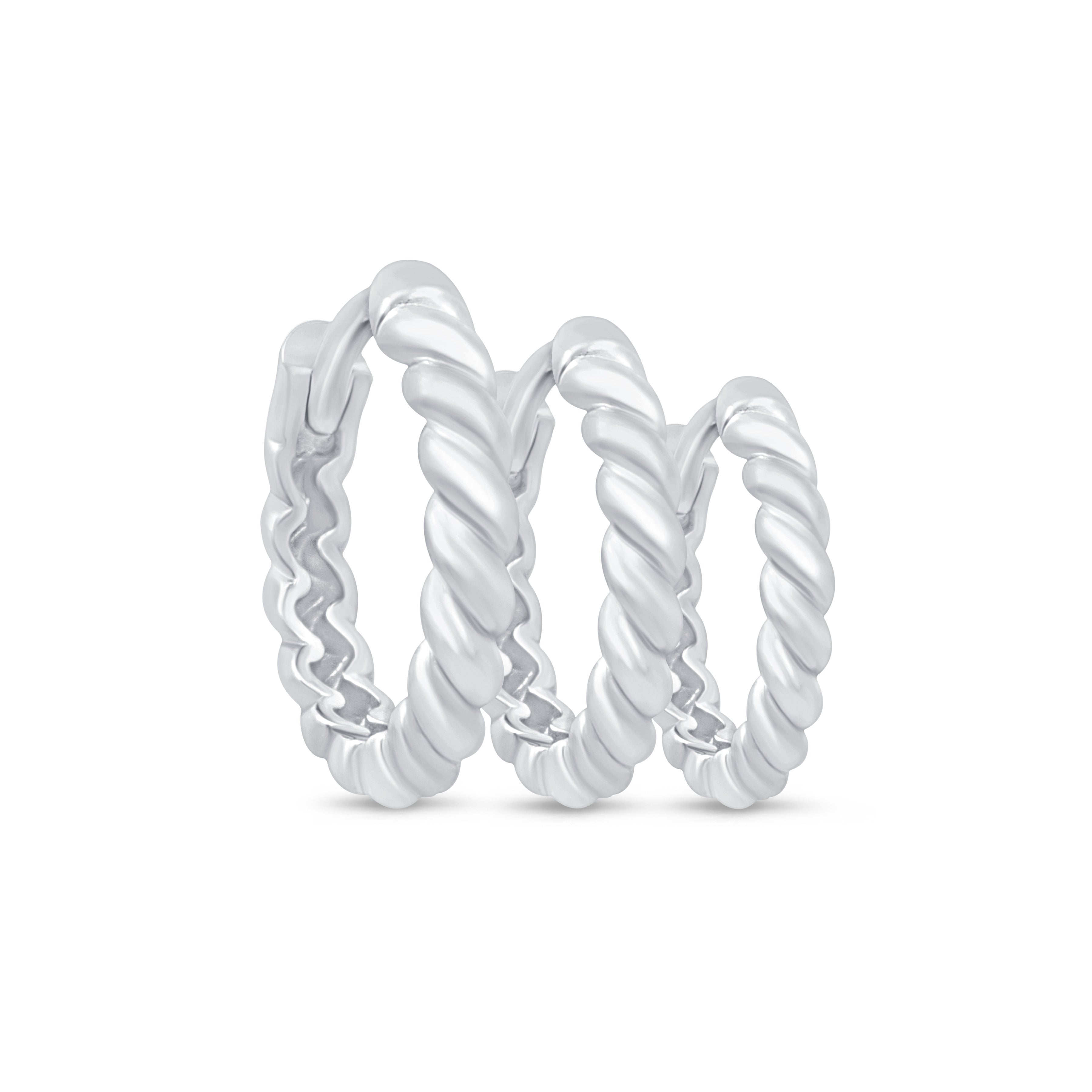 Twisted Rope Huggie Hoop in Solid 14k White Gold