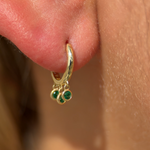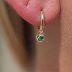 Emerald Charm Hoop in Solid 14k Yellow Gold