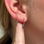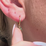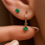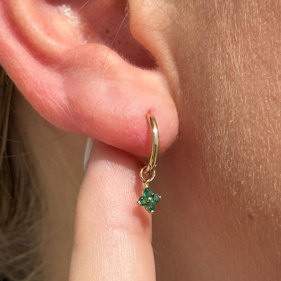 Hoop with Emerald Clover Charm in Solid 14k Yellow Gold