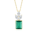 Celebrate the beauty of nature with an emerald-cut emerald pendant adorned with a marquise white sapphire crown. Crafted from solid 10k yellow gold, it features a 1.56 carat lab-created emerald-cut Emerald adorned with a 0.78 carat marquise-cut crown.