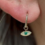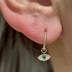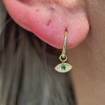 Hoop with Emerald Evil Eye Charm in Solid 14k Yellow Gold