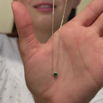 This dainty Emerald station necklace is perfect for everyday wear. Bezel set in solid 14k gold, available in 2 sizes, and adjustable at 2 lengths... the ultimate May birthstone necklace.