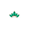 Sparkling with marquise cut emerald, these petite green stone high-quality 14k gold studs are the perfect accessory that will add a touch of feminine chic to any wardrobe. Make your brand-new piercing occasion unique with these trendy piercing studs that are hypoallergenic and non-irritating to the skin. Lightweight and beautiful, these studs are gracefully arranged into five leaf fans, giving them a nature-inspired style that will not go unnoticed. These small gold studs are the perfect accessory for day or night wear, lending an elegant versatility that is perfect for your life. Trendy and perfect for wearing with multi-earrings, if desired.