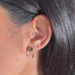 Teardrop Shaped Emerald and White Sapphire Hoop Earrings in Solid 10k Yellow Gold