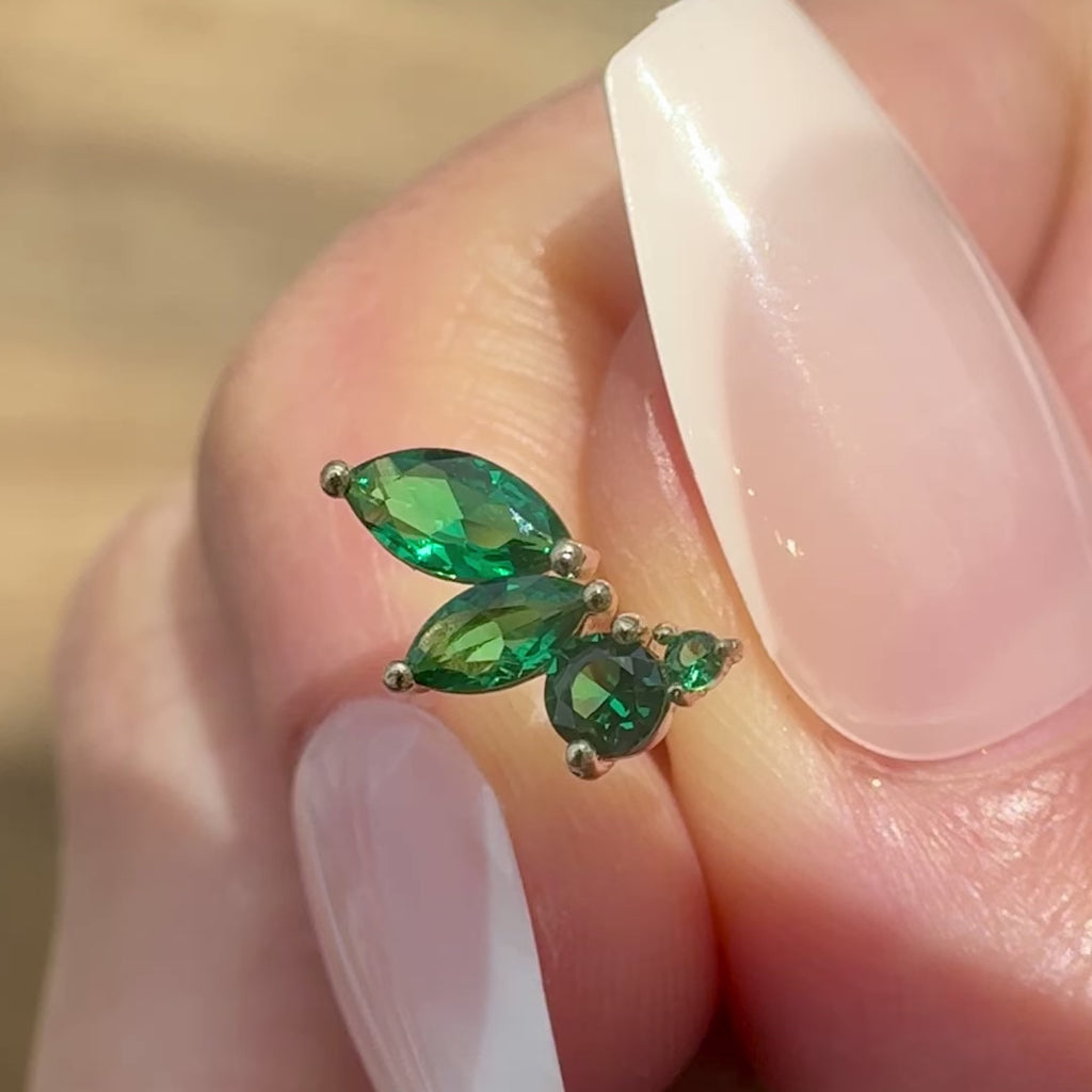 Green Emerald Marquise Wing Flat Back Stud Earrings in Solid 14k Yellow Gold