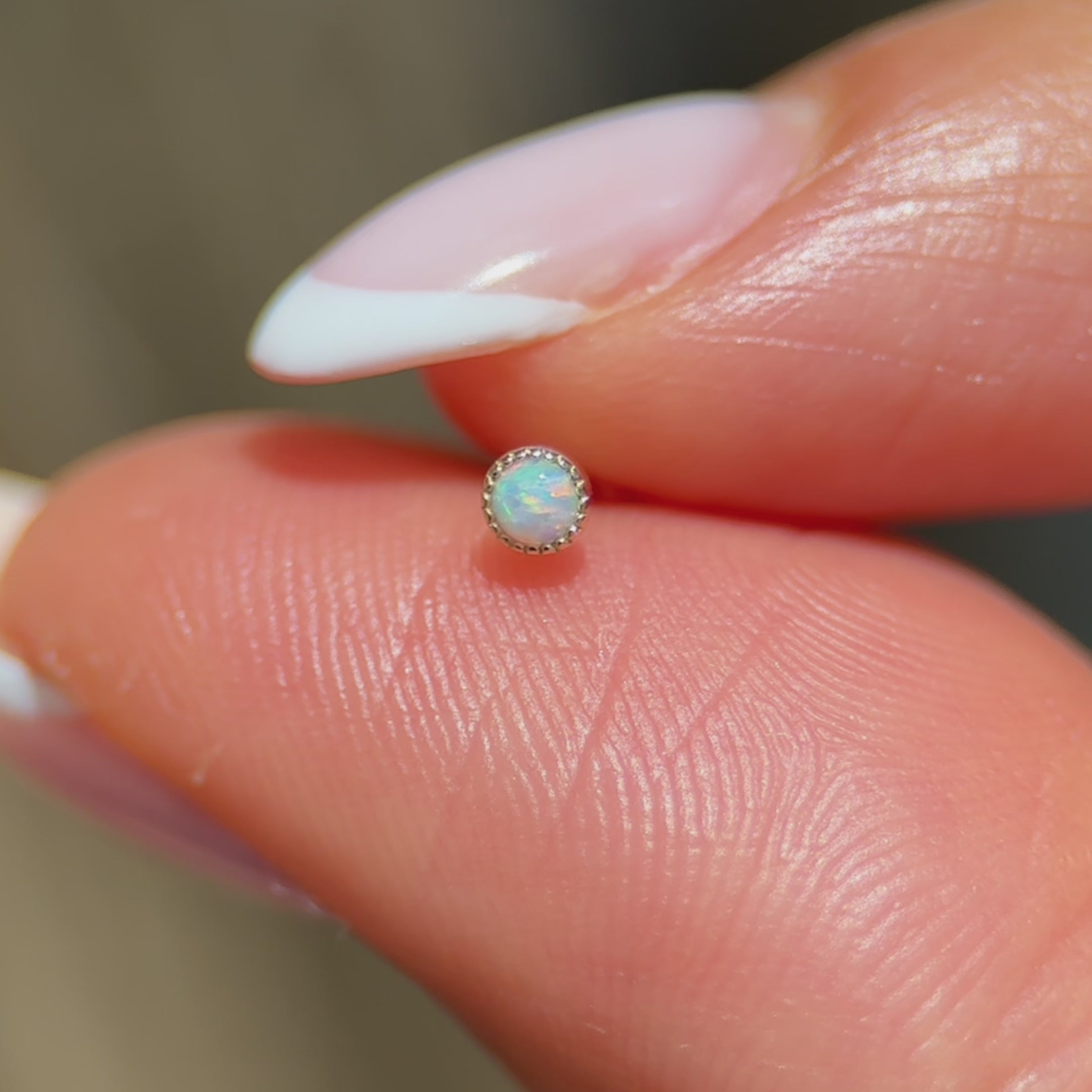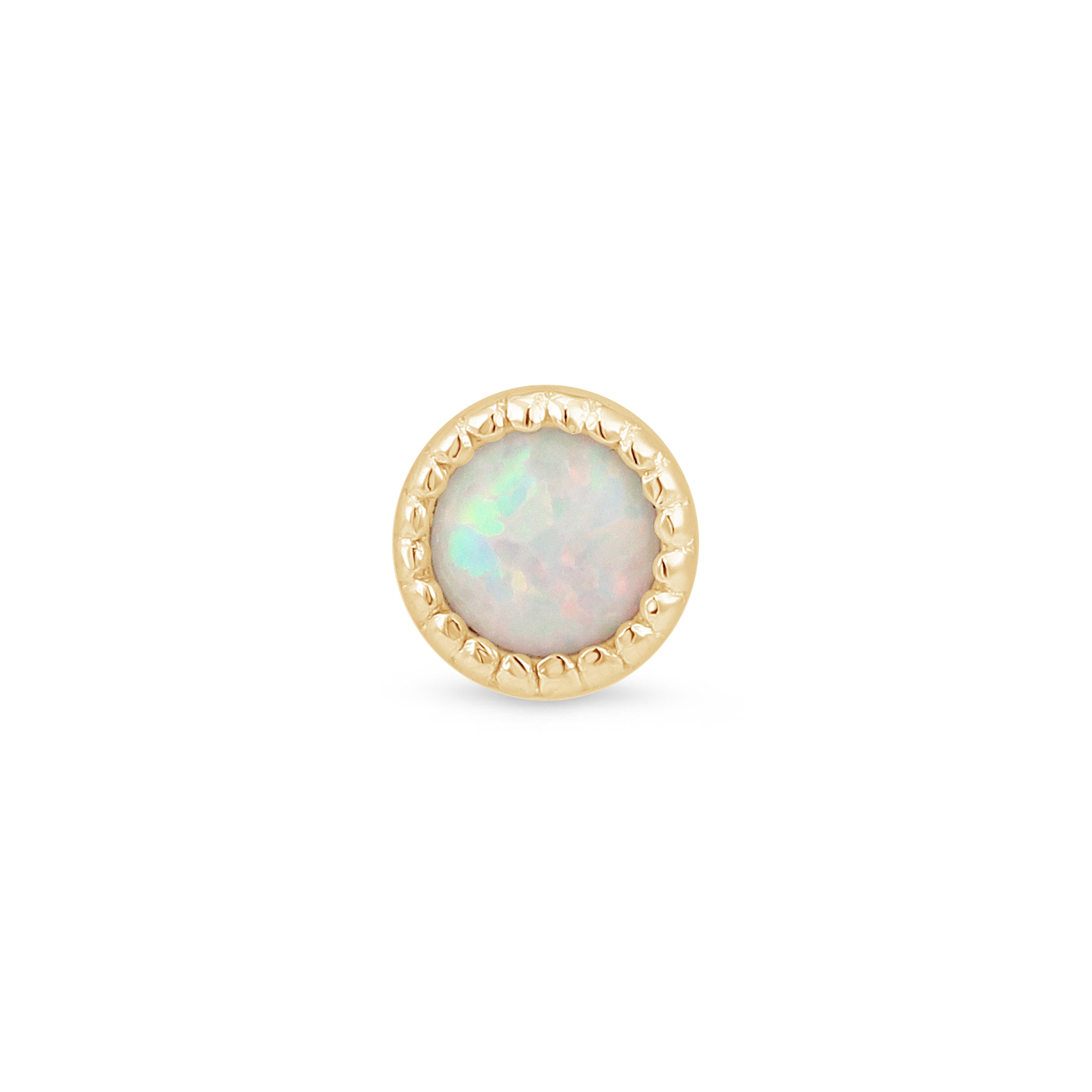 Add a touch of luminous elegance with this 14K gold round opal flat back stud. The round opal shines with soft, iridescent colors, making it a delicate and versatile accent for any ear stack.