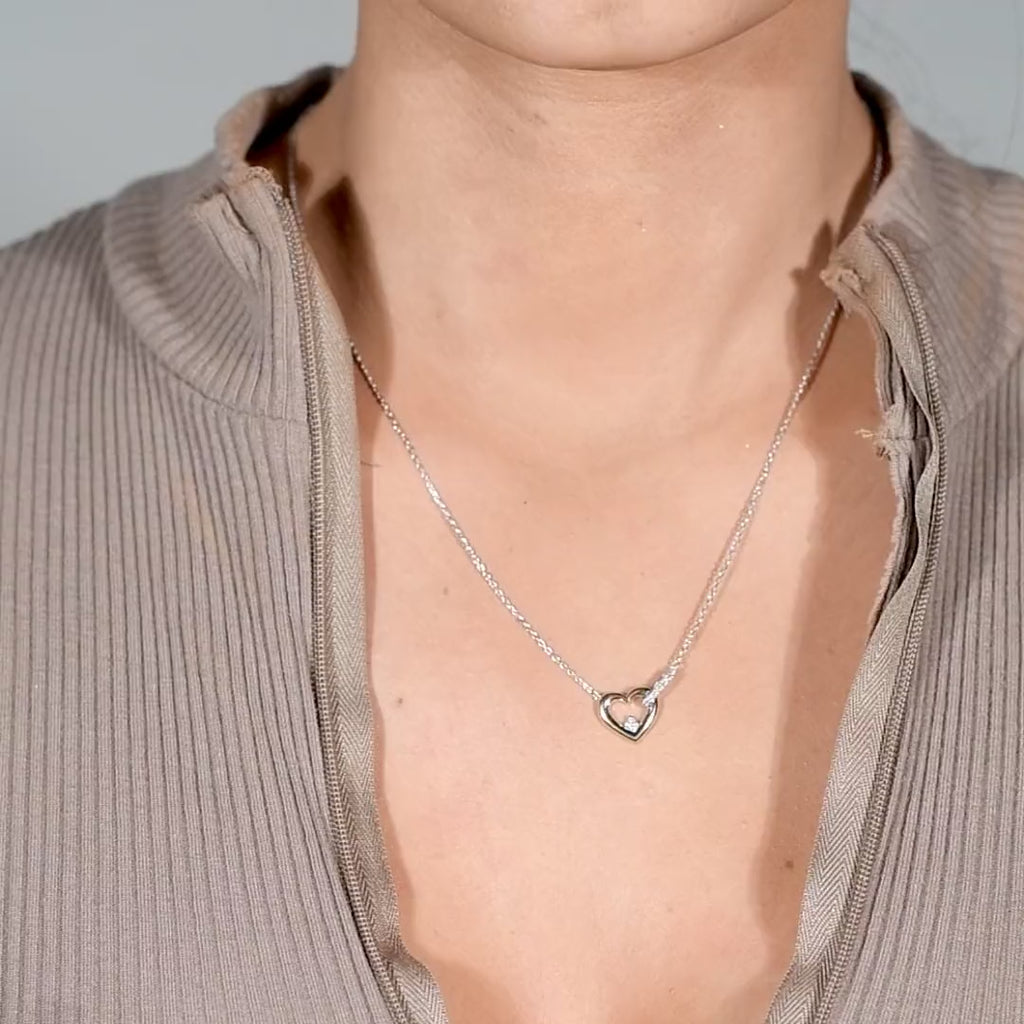 Celebrate unity with our interlocking heart necklace adorned with diamonds. Crafted from solid 10k gold and 925 sterling silver in a two-tone style, it features 0.07 carats of brilliant diamonds.