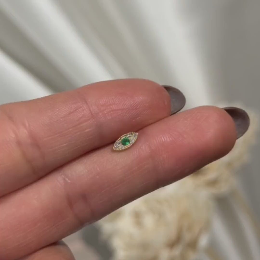 Emerald Evil Eye Flat Back Stud Earrings in Solid 14k Yellow Gold
