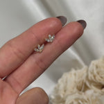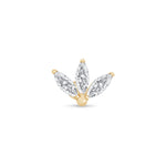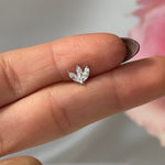 Sparkling with marquise Zirconia, these petite white stone high-quality 14k gold studs are the perfect accessory that will add a touch of feminine chic to any wardrobe. Make your brand-new piercing occasion unique with these trendy piercing studs that are hypoallergenic and non-irritating to the skin. Lightweight and beautiful, these studs are gracefully arranged into three leaf fans, giving them a nature-inspired style that will not go unnoticed. These small cubic zirconia gold studs are the perfect accessory for day or night wear, lending an elegant versatility that is perfect for your life. Trendy and perfect for wearing with multi-earrings, if desired.