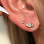 Sleek and refined, this evil eye-inspired marquise stud adds subtle edge to any ear stack. Crafted in 14k solid gold, it features a marquise-cut cubic zirconia framed by delicate beaded detailing. Designed with a threaded 18G post for a snug, secure fit, it’s perfect for helix, cartilage, tragus, or lobe piercings. The flat back can be tailored to your ear with our range of back length options, ensuring all-day comfort. Hypoallergenic and available in yellow or white gold, this minimalist stud shines whether worn solo or styled with others.