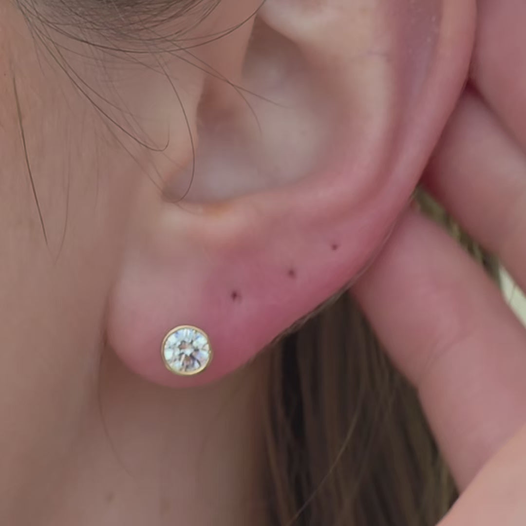 Natural Diamond Flat Back Stud Earrings Bezel Set in Solid 14k Yellow Gold