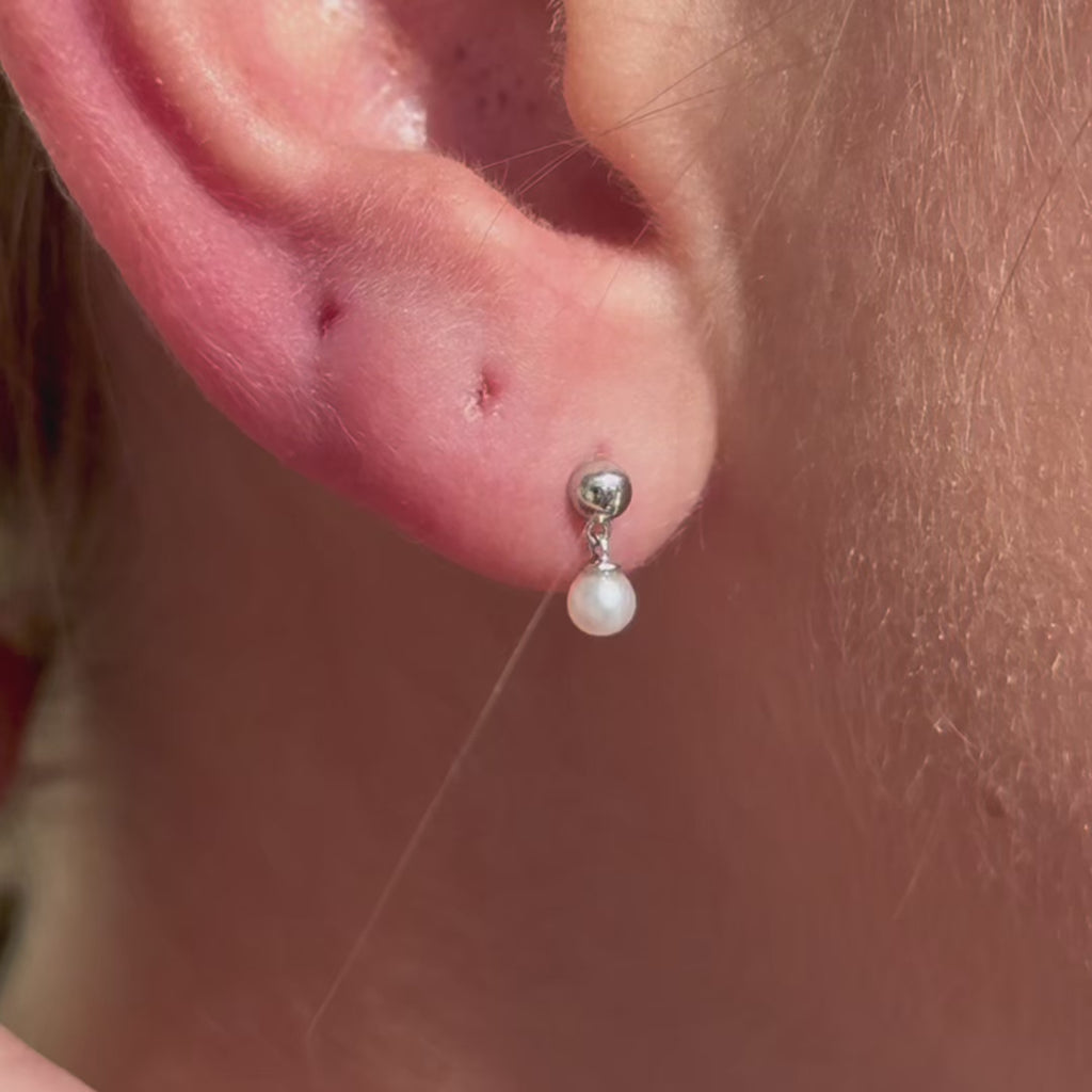 Gold and Pearl Drop Flat Back Stud Earrings in Solid 14k White Gold