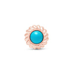 Round Turquoise Cabochon Flat Back Stud Earrings in Braided Bezel Set in Solid 14k Rose Gold