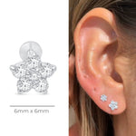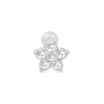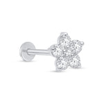 Six Round Diamond Flower Flat Back Stud Earrings in Solid 14k White Gold