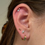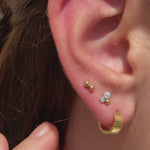 These super-chic, high-quality gold diamond piercing studs feature sparkling, round brilliant cut diamonds that are set into graduated size round discs on each of these cluster earrings. These premium, lightweight diamond studs are made in 14 karat gold with a bright finish and are hypoallergenic and non-irritating finished with textured detailing around the clusters for an added luxe element. These contemporary piercing studs are anything but ordinary and are sure to update your look with a fresh new vibe that will draw attention to your new piercing!s! Mix and match these fashionable gold diamond studs with your other jewelry. Accentuate your casual or night attire with these eye-catching triple cluster stud diamond earrings.