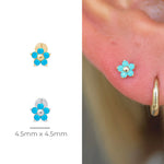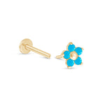 Turquoise Flower Flat Back Stud Earrings in Solid 14k Yellow Gold