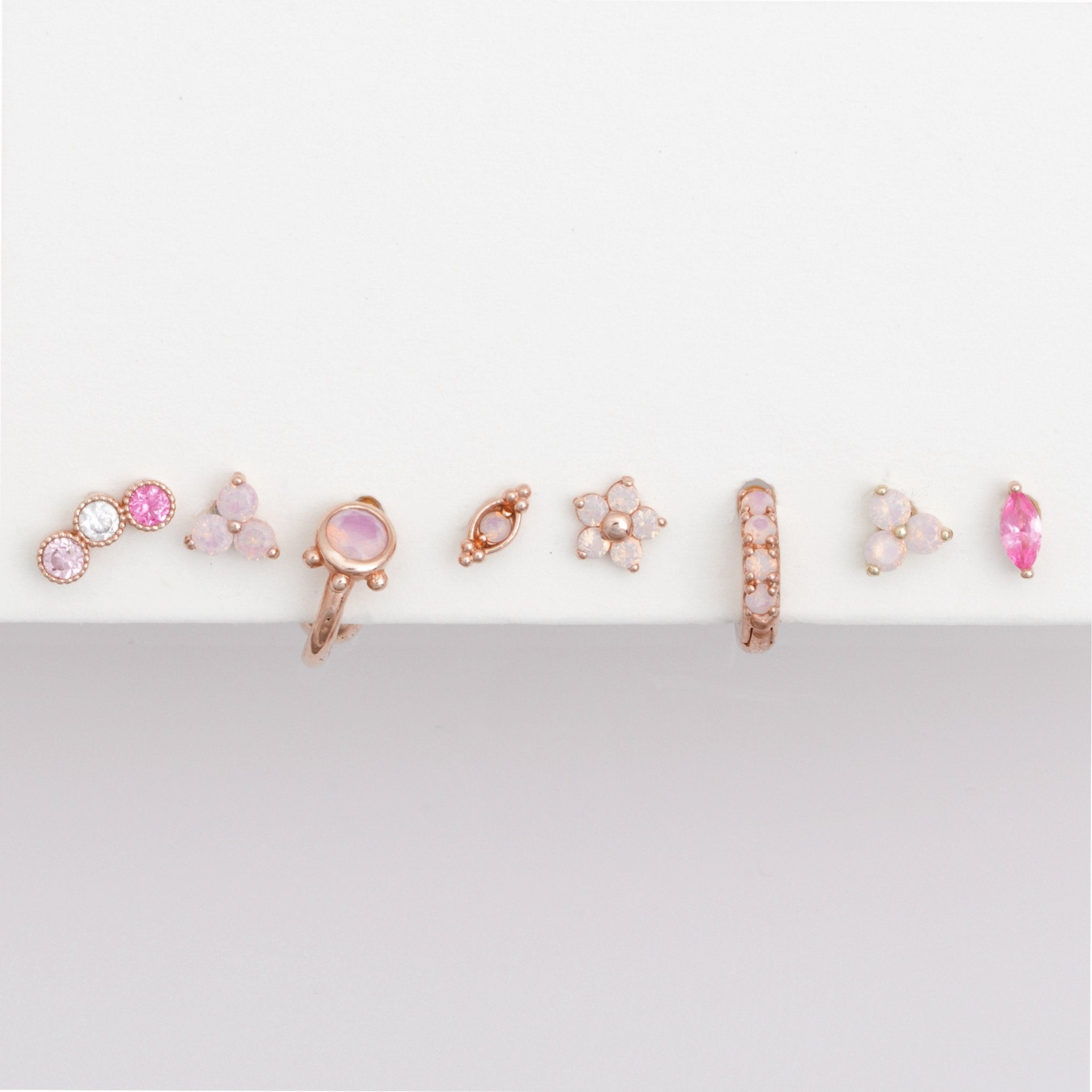 Pink Opal Huggie Earring in Solid 14k Rose Gold