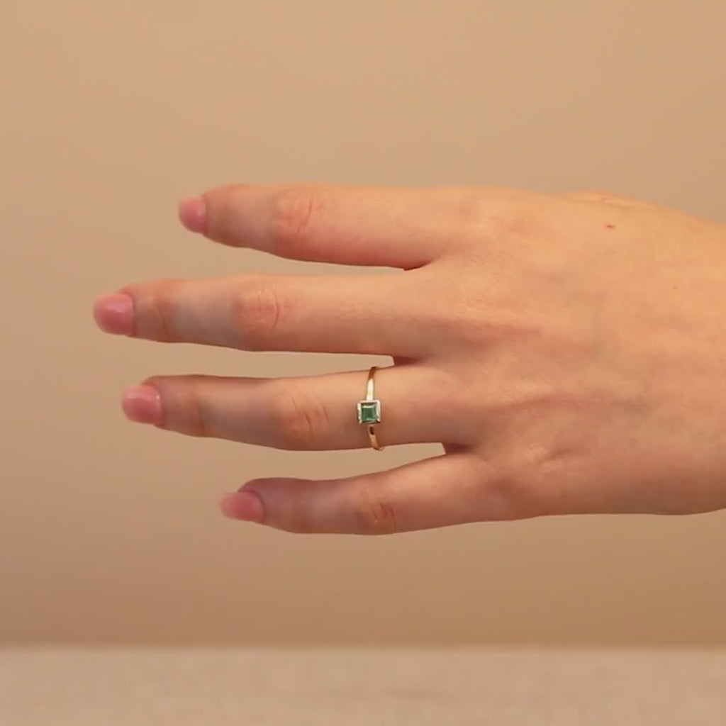 This stunning princess cut genuine Green Emerald ring is secured in a bezel setting. Gemstones are purchased either for their beauty of color or their association with the birthday months. Green Emerald is a birthstone for May month birthdays. Surprise her with this thoughtful gift that she will cherish for years to come.