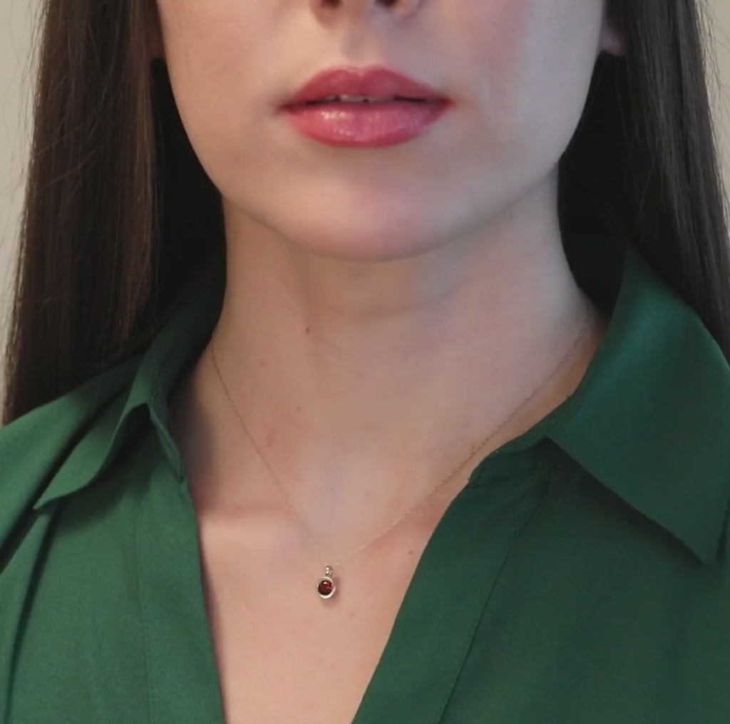 Make an elegant statement with this classic garnet pendant necklace. Comes with an 18" gold chain.