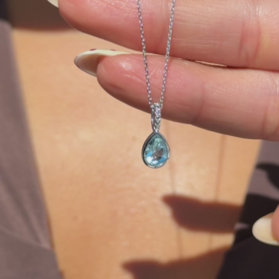 Blue Topaz Teardrop Pendant Necklace in Solid 14k White Gold