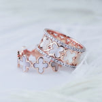 Mother of Pearl Clover Eternity Ring in Solid 14k Rose Gold