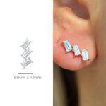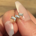 Our triple baguette flat backs, a sophisticated fusion of modern style and timeless elegance. Crafted with precision and flair, these earrings feature a cascade of sleek baguette-cut Cubic Zirconia that drape gracefully, exuding an aura of chic sophistication. The elongated silhouette and contemporary design make these earrings a versatile accessory that effortlessly transitions from day to night, adding a touch of glamour to any ensemble.
