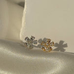 Blooming Flower Flat Back Stud Earrings in Solid 14k White Gold