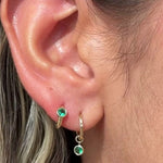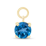Hoop with Prong Set Blue Topaz Charm in Solid 14k Yellow Gold
