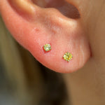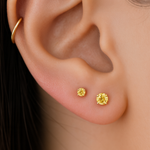 Our classic created Citrine flat back earrings are a stunning addition to your cartilage earring collection. Crafted with precision in 14k solid yellow gold, these earrings feature a created Citrine gemstone with a round cut, available in sizes 2.5mm and 3mm. Set in a secure prong setting, these earrings offer both elegance and durability, while the internally threaded labret and flat back earring design ensure comfort for various ear piercings. Choose from different bar lengths for the perfect fit, ranging from small to large. Perfect for both men and women, these hypoallergenic earrings are nickel-free, lightweight, and make a thoughtful jewelry gift, especially for those with November birthdays.