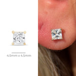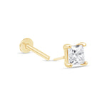 Cubic Zirconia Princess Cut Flat Back Stud Earrings in Solid 14k Yellow Gold