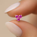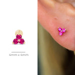 Pink Ruby Trinity Cluster Flat Back Stud Earrings in Solid 14k Yellow Gold