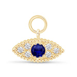 Embrace timeless protection with the created Sappire evil eye charm in solid 14k yellow gold.