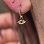 Hoop with Sapphire Evil Eye Charm in Solid 14k Yellow Gold