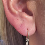 Hoop with Bezel Set Teardrop Charm in Solid 14k Yellow Gold