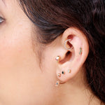 These adorable multi-star Big Dipper constellation gold piercing stud earrings are made in brightly polished 14k Yellow Gold. They are a fantastic selection for your newest ear piercing! Made with three stars in a graceful arc, these high-quality lucky star earrings would look great on a cartilage or lobe piercing with their linear shape. A shiny finish on these petite, non-irritating, hypoallergenic, premium piercing studs creates a striking style that is perfect for showing off. Mix and match these little piercing studs with hoops and studs on neighboring ear holes, if desired. Dainty in size, these bold little piercing studs are unique.