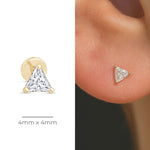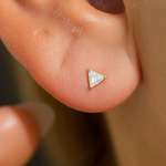 These classic triangle studs are a unique addition to your ear stack. Expertly handset in 14k solid yellow or white gold, these comfortable and hypoallergenic flat back earrings are perfect for everyday wear.