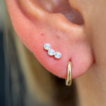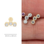 These high-quality, dainty earrings feature three stones on each premium piercing stud, sparkling with the vibrant stone color of your selection. Designed in brightly polished 14k solid gold and made with non-irritating, hypoallergenic materials that are soft on the skin, these piercing studs are perfect for adding a refreshing color that is right on trend. Sweet and feminine pink is perfect for anyone on trend. These colorful cluster 3-stone gold petite studs are a perfect way of celebrating your newest ear piercing.
