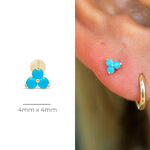 Turquoise Trinity Cluster Flat Back Stud Earrings in Solid 14k Yellow Gold