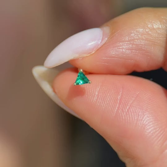 These colorful triangle studs add a fun pop of color to your ear stack. Available in created Amethyst, created Emerald, created Ruby, Black Onyx, or Cubic Zirconia all expertly handset in 14k solid yellow gold. These lightweight, comfortable, and hypoallergenic flat back earrings are perfect for everyday wear.