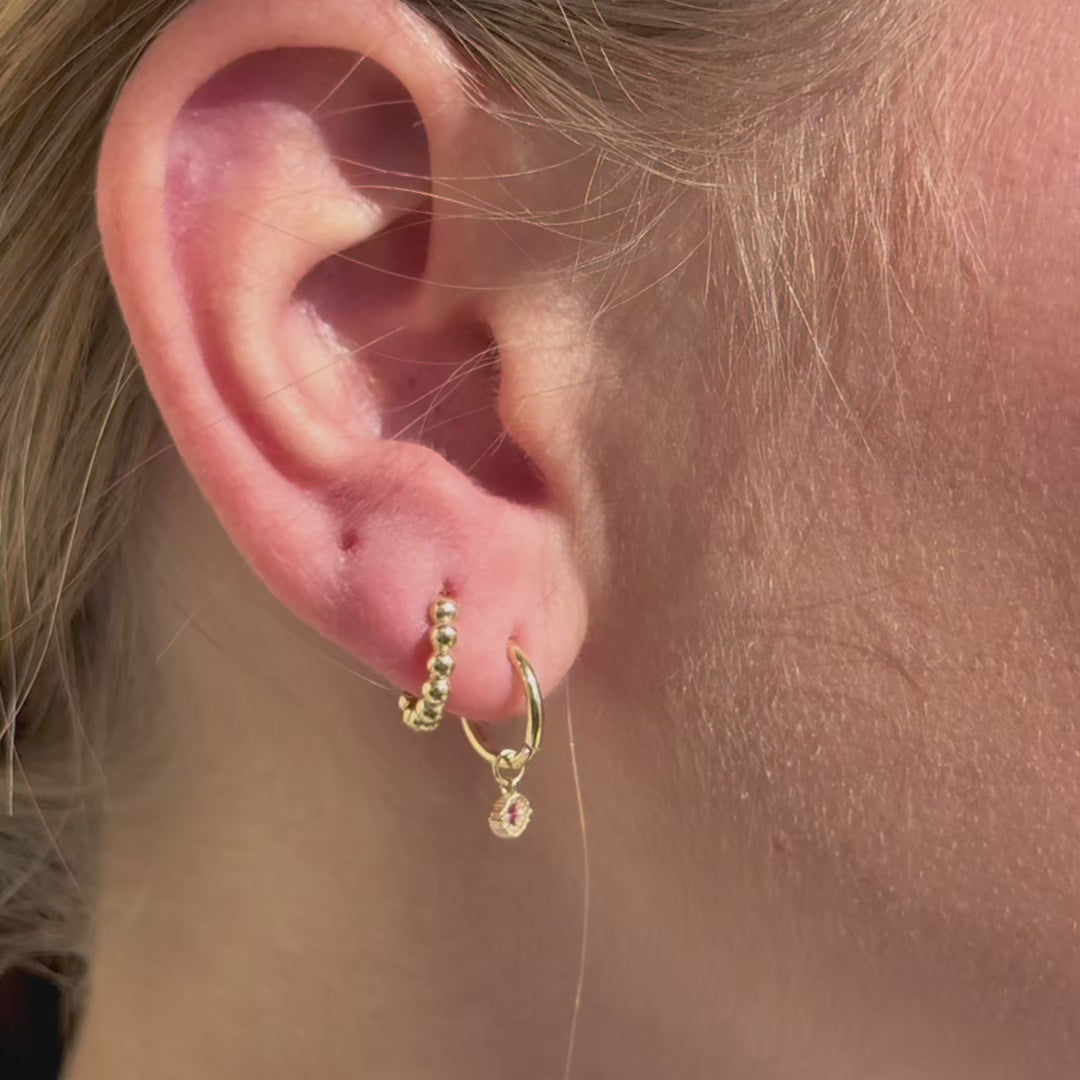 Bubble Beaded Hoop Earring in Solid 14k Yellow Gold