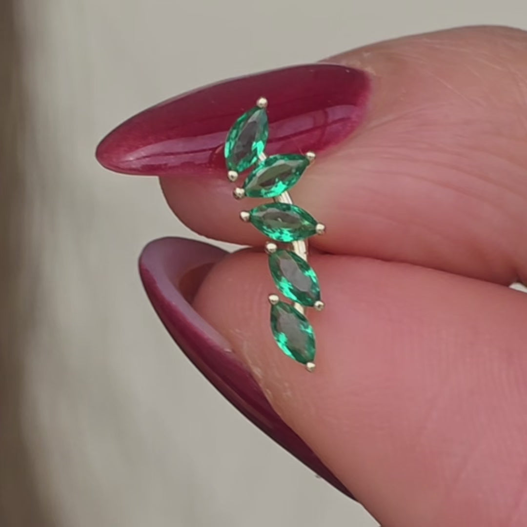 Emerald Marquise Illusion Ear Climber Flat Back Earring in Solid 14k Yellow Gold
