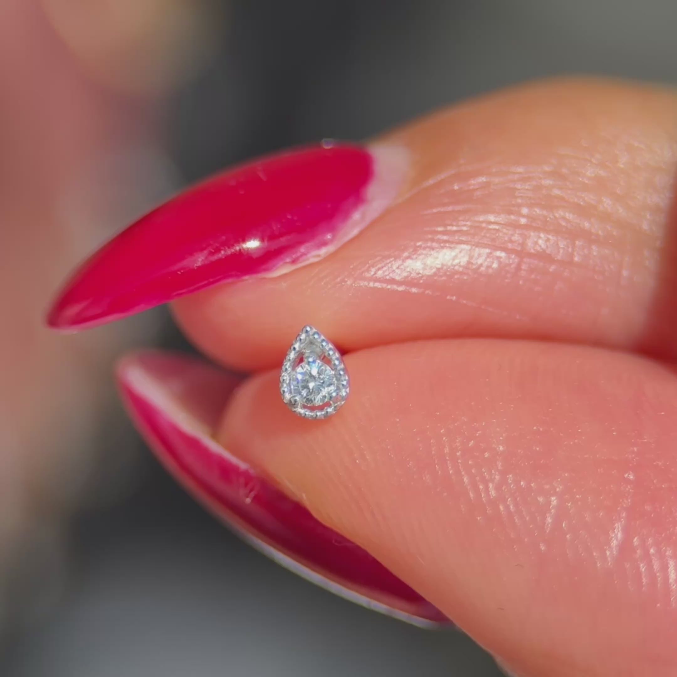 Pear Diamond Flat Back Stud Earrings Milgrain Setin Solid 14k White Gold