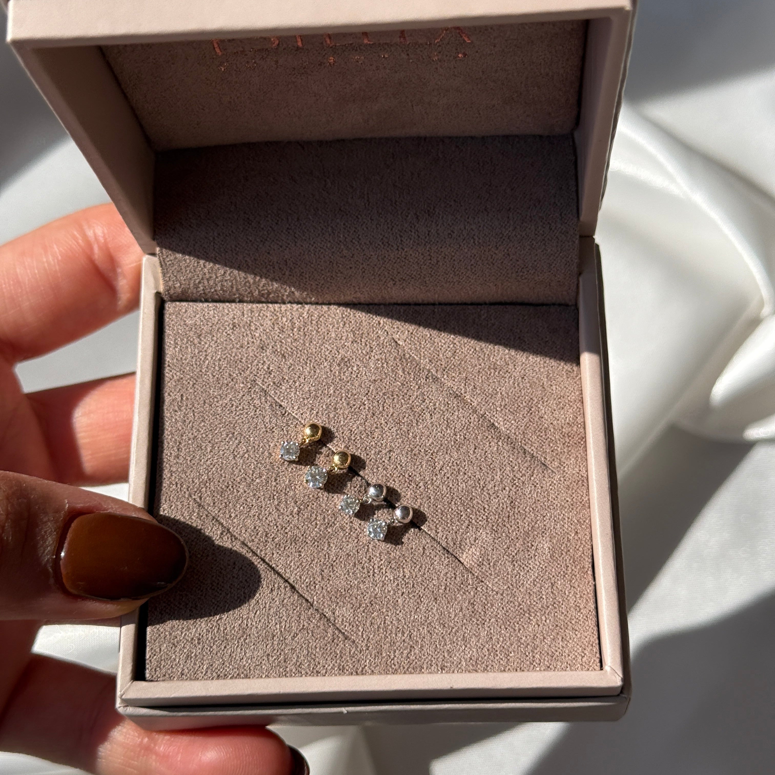 - Avoid Harsh Products: Keep face wash, lotion, sunscreen, and shampoo away from your earrings. The chemicals can dull the metals and affect the gemstones.