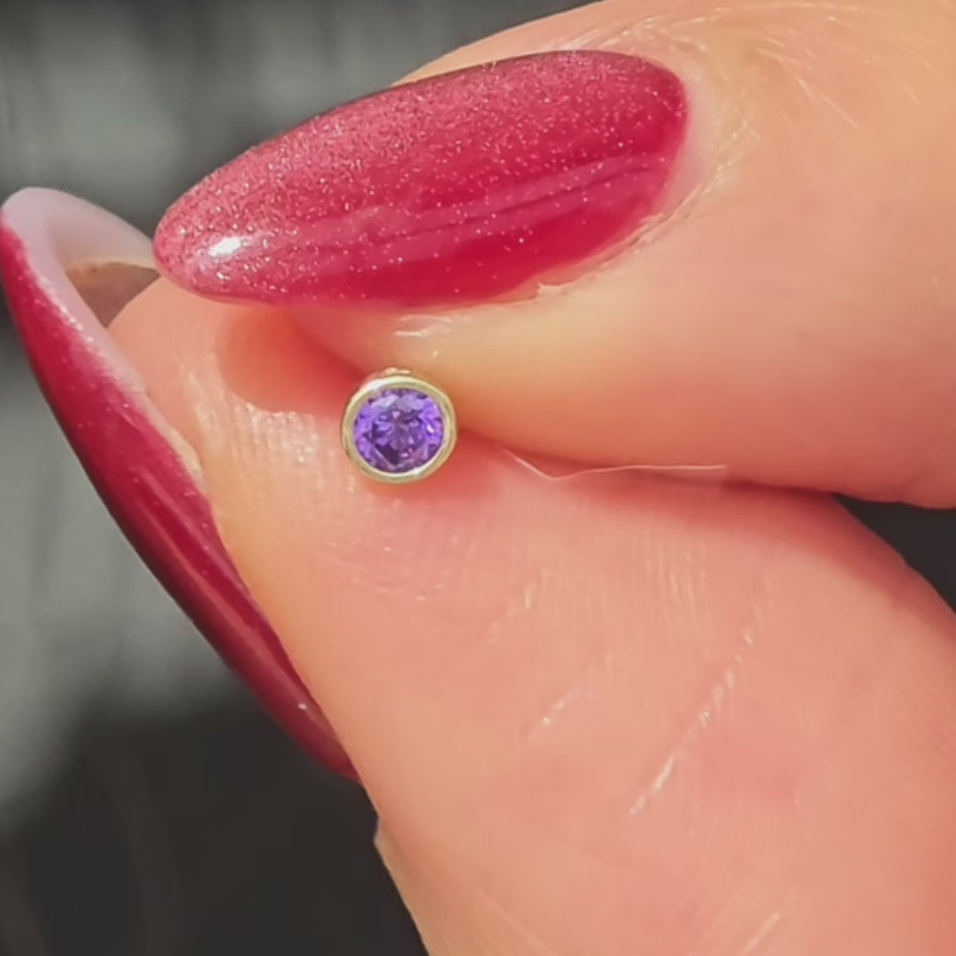 With a touch of sparkle and a beautiful purple hue, these beautiful bezel set Amethyst Flat Back Studs are the perfect way to add some color to your everyday attire. They're also made in solid 14k gold for a sleek finish.