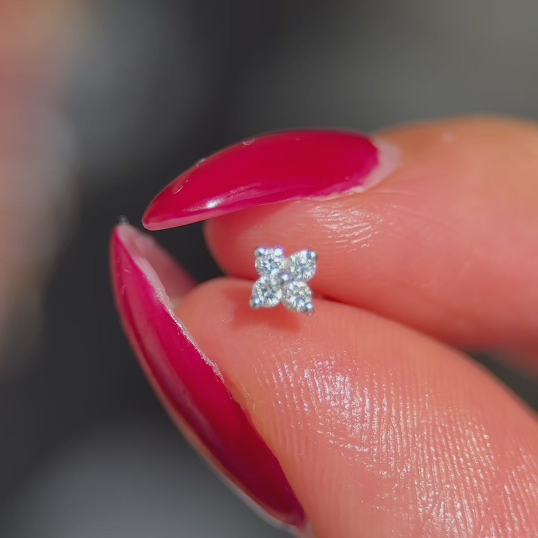 These high-quality 14k gold hypoallergenic piercingdiamond studs are perfect for those who want a modern look for their freshest piercing. Designed in a bright polished finish, these lightweight, premium quality studs feature sparkling diamond is prong set, adding a bit of sparkle with luxe appeal to your existing or new ear piercing. Perfect for pairing with hoops and other studs on neighboring ear holes, these cute petal flower diamond studs are easy to dress up or down with their floral appeal. Accentuate your wardrobe with all eyes on your newest ear piercings with these super-chic studs that are non-irritating and provide comfort for all day and night wear.