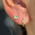 Emerald Bee Flat Back Stud Earrings in Solid 14k Yellow Gold