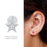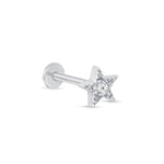 Wish upon a lucky star! Designed in brightly polished 14k white gold Cubic Zirconia Solitaire Star, these petite star high-quality piercing stud earrings are the perfect trendy selection for your existing or next ear piercing. Slim lines and lightweight .Ideal for matching with other hoops and studs on neighboring ear holes.