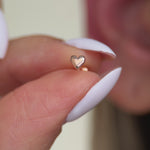 This adorable non-irritating, hypoallergenic piercing stud heart piercing earring is super-trendy and lightweight, making it a great selection for your next brand-new ear curation! Designed in brightly polished 14 stamped gold, these high-quality, premium studs display a beautiful high shine finish. Hearts symbolize love and commitment, which makes these cute heart piercing studs a great selection if you are getting new piercings with a friend or a loved one! Commence the occasion with these memorable dainty heart studs. Hearts are easy to mix and match with their sweet asymmetrical shape. your new heart gold piercing studs with hoops or other studs on your ears for an eye-catching look time and again.