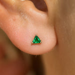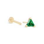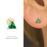 These colorful triangle studs add a fun pop of color to your ear stack. Available in created Amethyst, created Emerald, created Ruby, Black Onyx, or Cubic Zirconia all expertly handset in 14k solid yellow gold. These lightweight, comfortable, and hypoallergenic flat back earrings are perfect for everyday wear.